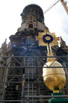 On 22 June 2004, a new cross was planted on the church's cupola - as a gift of the British people! You can still see old stones in the new building: scars of history, scars of life. And people in the so-called secularized East of Germany are going to discover this church.