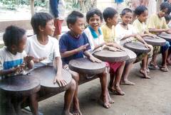 Indigenous Mabaka children play traditional gongs