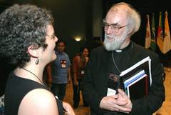 Most Rev. Dr Rowan Williams, Archbishop of Canterbury, was the guest in Friday's chat, paired with Peggy Mekel of Indonesia. The two discussed globalization and economic justice issues, with Williams noting that "economic slavery is as much slavery as other kinds."