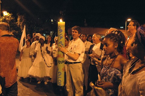 March for Peace in Porto Alegre: Rev. Hansulrich Gerber, DOV Coordinator for the WCC, carrying the big candle