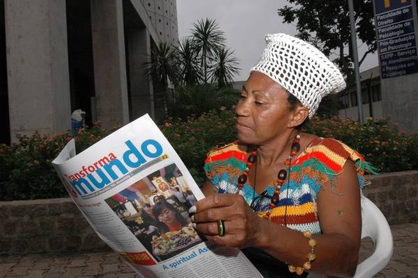 Ana Centeno, Brazil, Agentes de Pastoral Negro, reading the Assembly newspaper Transforma Mundo