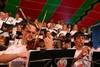 Les confettis oranges et bleus volettent encore à travers la salle lorsque le clown redescend de la scène sur l'air d'un célèbre tube rock.